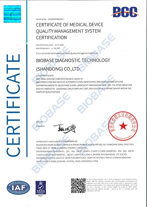 3.21 ISO 13485-BIOBASE MEDFUTURE SCIENTIFIC EQUIPMENT CO., LTD